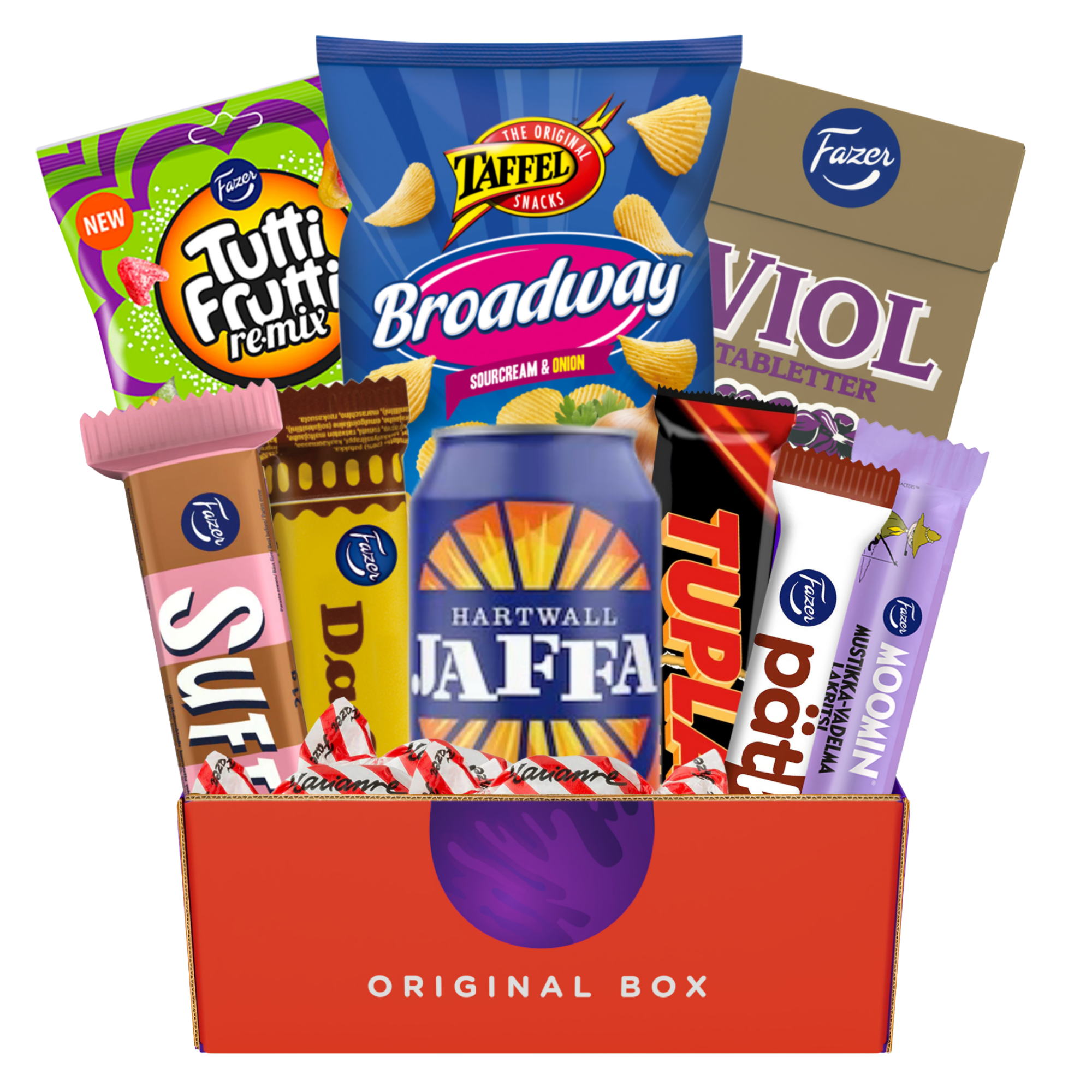 Say “Moi!” to our Finland Box – packed with some of the country’s most loved snacks! This box is filled with iconic Finnish treats from the land of saunas, Santa Claus, and a thousand lakes. Inside you’ll find favourites like Tupla chocolate bar, Moomin sweets, Taffel Broadway sourcream & onion crisps, Hartwall Jaffa orange soda, Salmiakki liquorice, and more delicious Finnish classics.